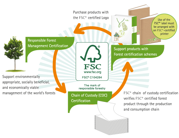 Material which are FSC certified and Recycled together with our vegetable based ink for environmentally friendly end products.