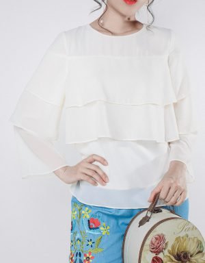 3 Layer Sleeves Pearl Chiffon Top